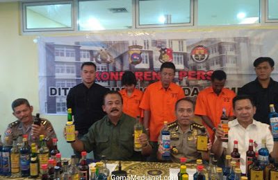 Ditreskrimsus Polda Sumbar Ringkus Tiga Pelaku Produksi 4 Ribuan Minuman Beralkohol Ilegal