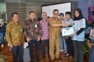 Dalam kesempatan tersebut juga diserahkan Pemenang Lomba Program Aku Saudagar Muda di rumah kretaif Padang periode 19 Febuari - 19 April 2019. (Hms)