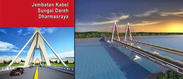 Padang AT- Pengerjaan pembangunan Jembatan kabelstayed Sungai Dareh Kab.Darmasraya Sumatera Barat terus di kebut, seiring dengan berjalannya waktu, tahap demi tahapan item pembangunan struktur pada jabatan ini satu persatu dapat terselesaikan.